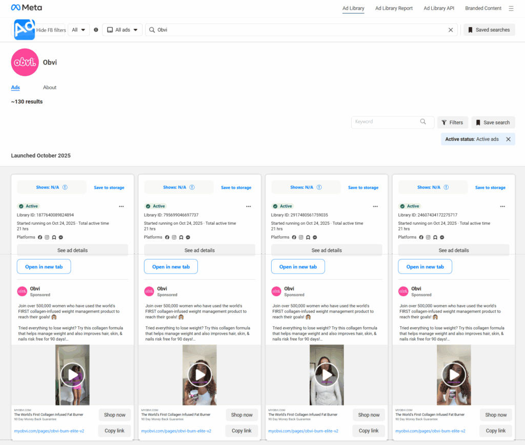 It's a free tool that lets you look behind the curtain and see all the active ads any brand is currently running: